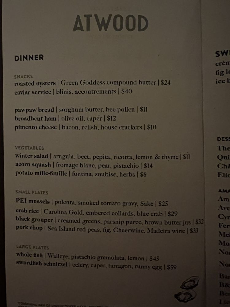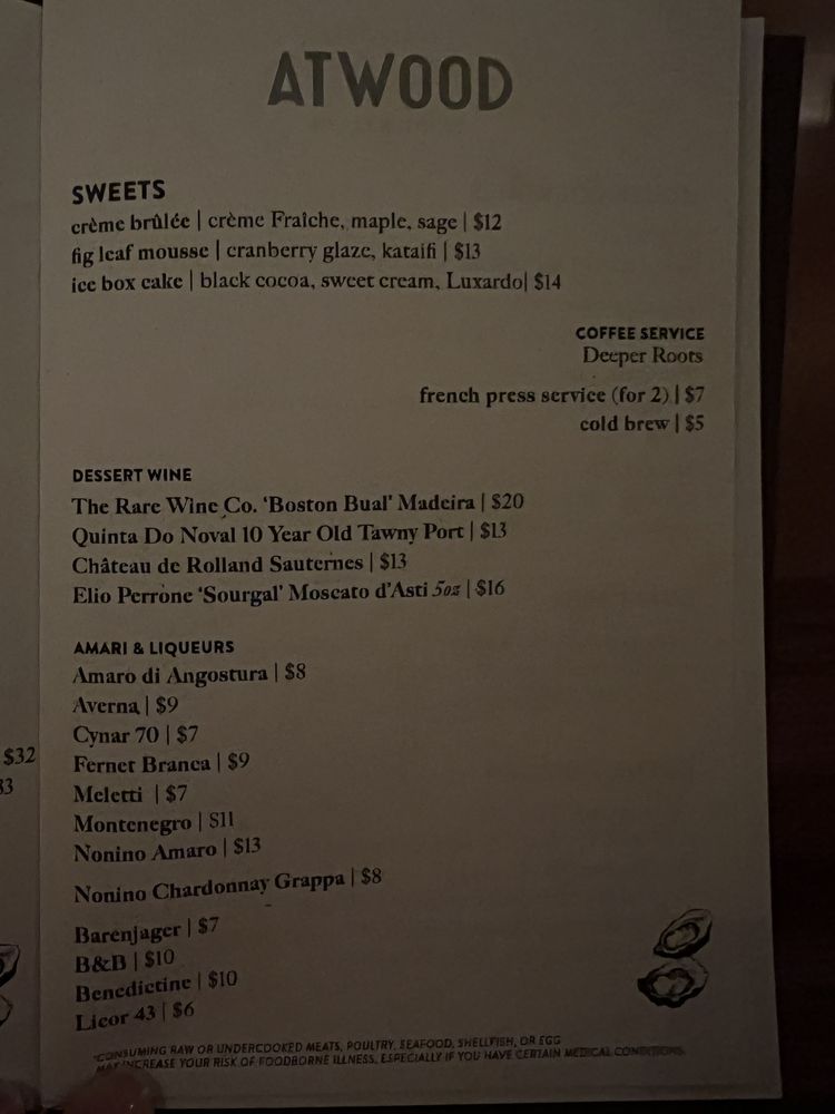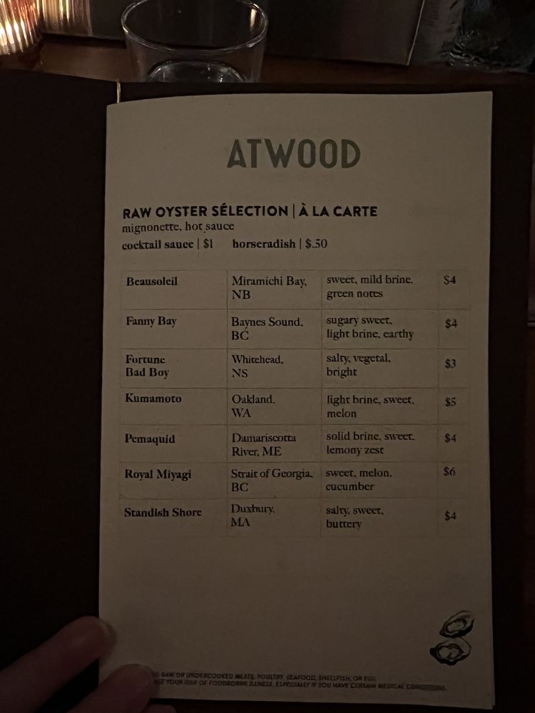 Atwood Oyster House Menu