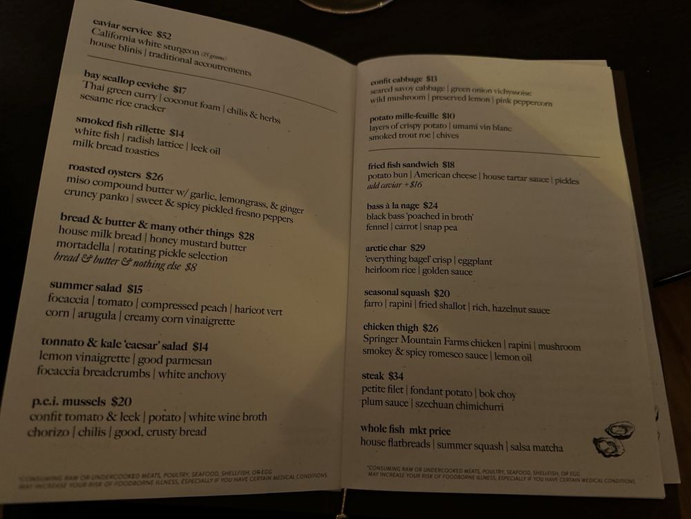 Notable highlights from the menu include roasted oysters and exquisite caviar, each dish crafted with meticulous attention to flavor. The staff is dedicated and attentive, ensuring a dining experience that feels personalized and exclusive. Pairing your meal with unique offerings like the salt vinegar martini or their selection of dessert wines elevates your visit further.